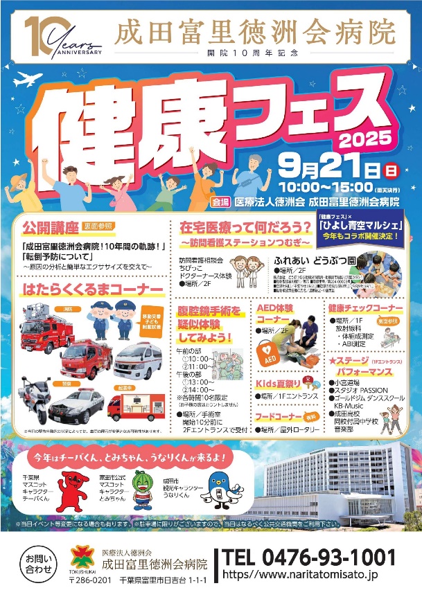 9月21日(日)に開催いたしました「病院開院10周年記念 健康フェス」は、約1,700名の地域の皆様にご来場いただき、無事に盛況のうちに終えることができました。皆様には心より御礼申し上げます。